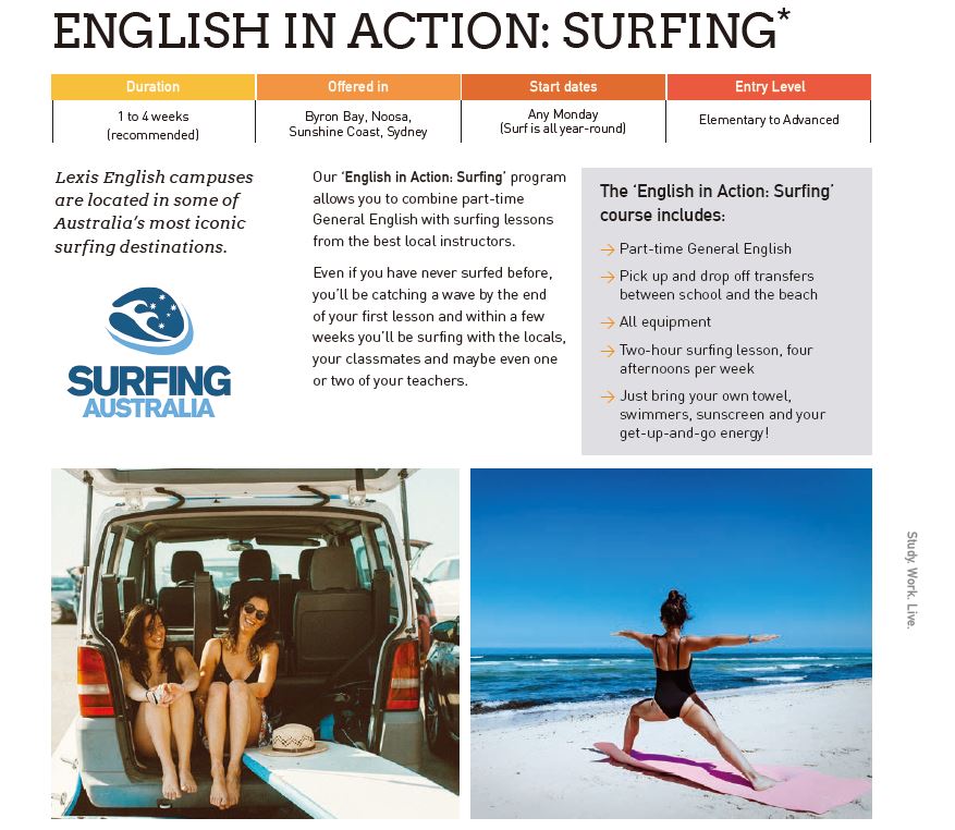 The English in Action (Surfing) course includes: