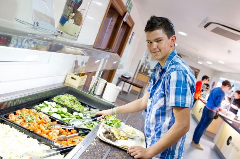 學校三餐提供學生都一系列營養均衡的早餐,午餐和晚餐。每天的菜單包括各種冷熱食品,包括新鮮水果和蔬菜。外出遊覽期間將會提供外帶餐盒。另外休息時間和每晚的家庭聚會都提供小點心。如果您的孩子有與過敏相關的飲食要求,我們將會針對學生飲食需求進行調整。